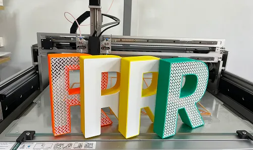 3D printing technology has introduced an innovative alternative for producing channel letter signage. Instead of metal fabrication, a large-format 3D printer can directly print the letter’s “return” (side wall) using durable plastic filament. This method is rapidly growing in popularity because it addresses many pain points of traditional fabrication