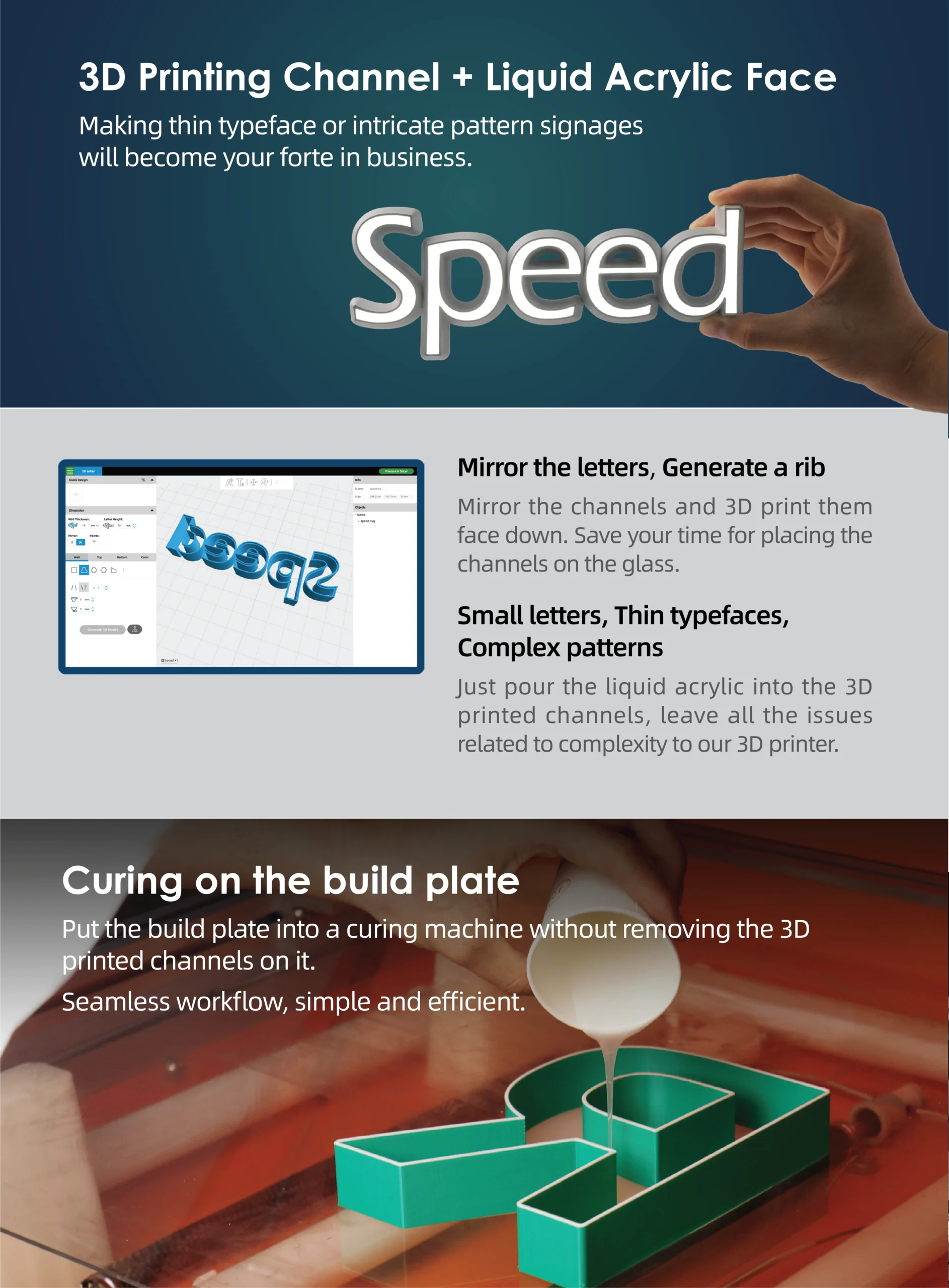 Adopting 3D printing for channel letters can save tens of thousands of dollars in equipment costs. Traditional fabrication often requires specialized machines – channel letter bending machines, brakes, shears, welding equipment, and more. These are expensive to buy and maintain. By comparison, a single 3D printer can replace the bending, welding, and much of the finishing process. Businesses can avoid the major capital investment in multiple machines (and the floor space to house them) by using a 3D printer that does it all in one. This lower barrier to entry opens the field to smaller sign shops and enables larger shops to expand capacity more affordably.