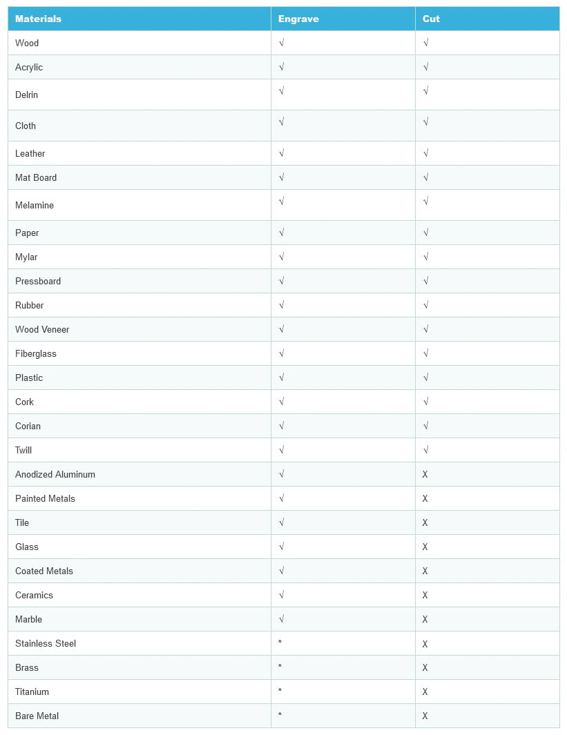 * means the laser cannot engrave directly, you will need the help of the “Cermark spray”, you can purchase this product from us